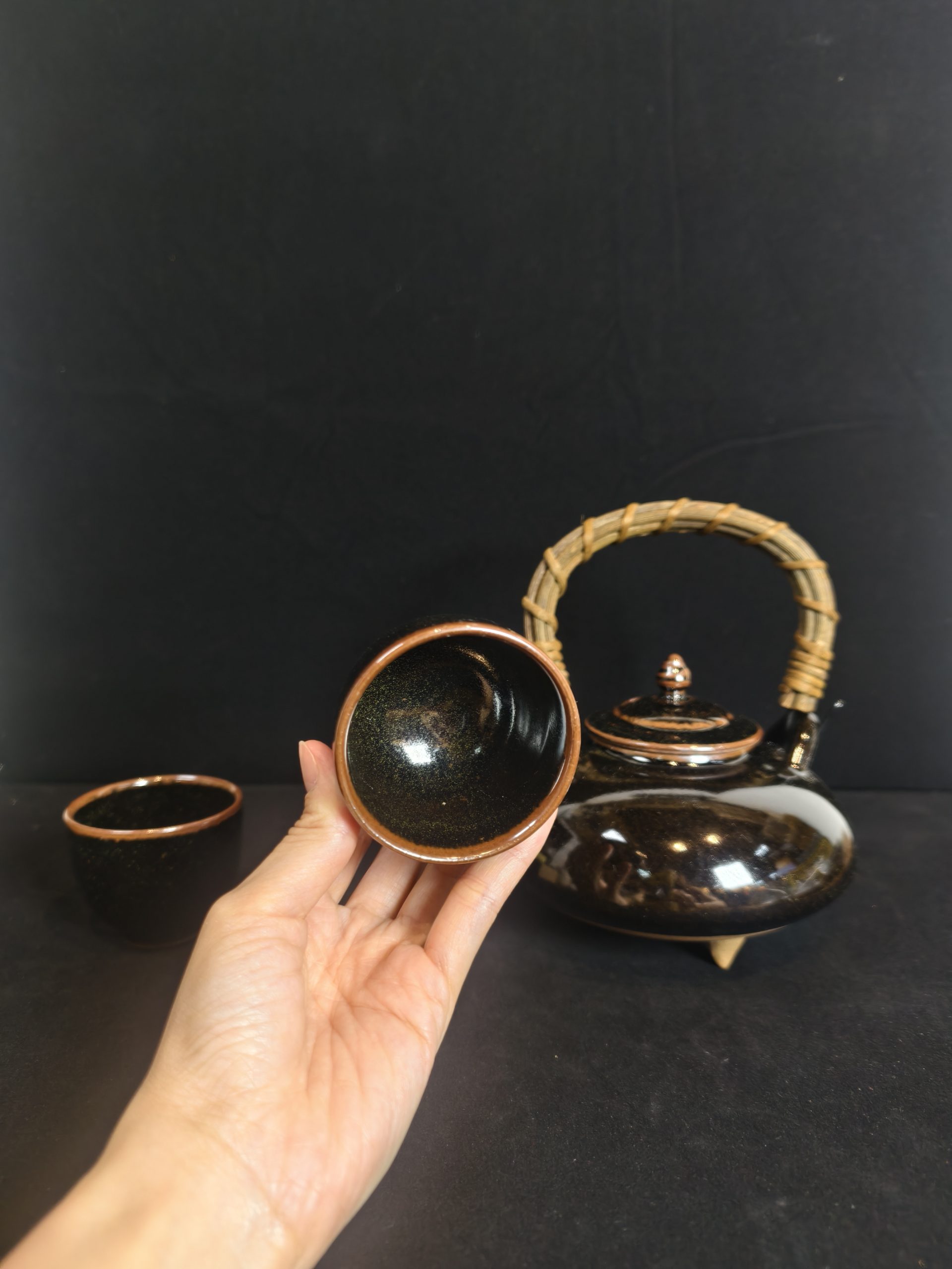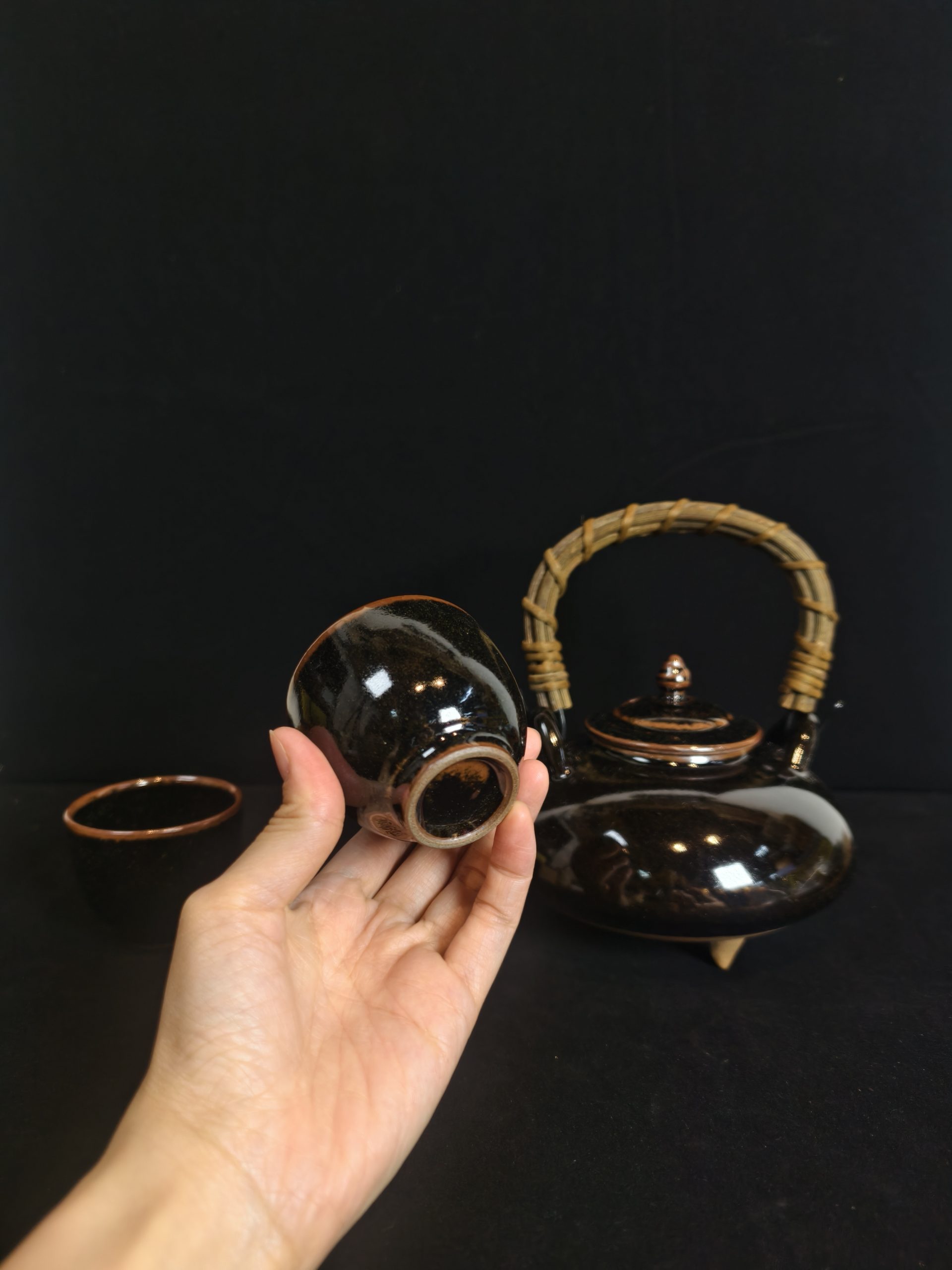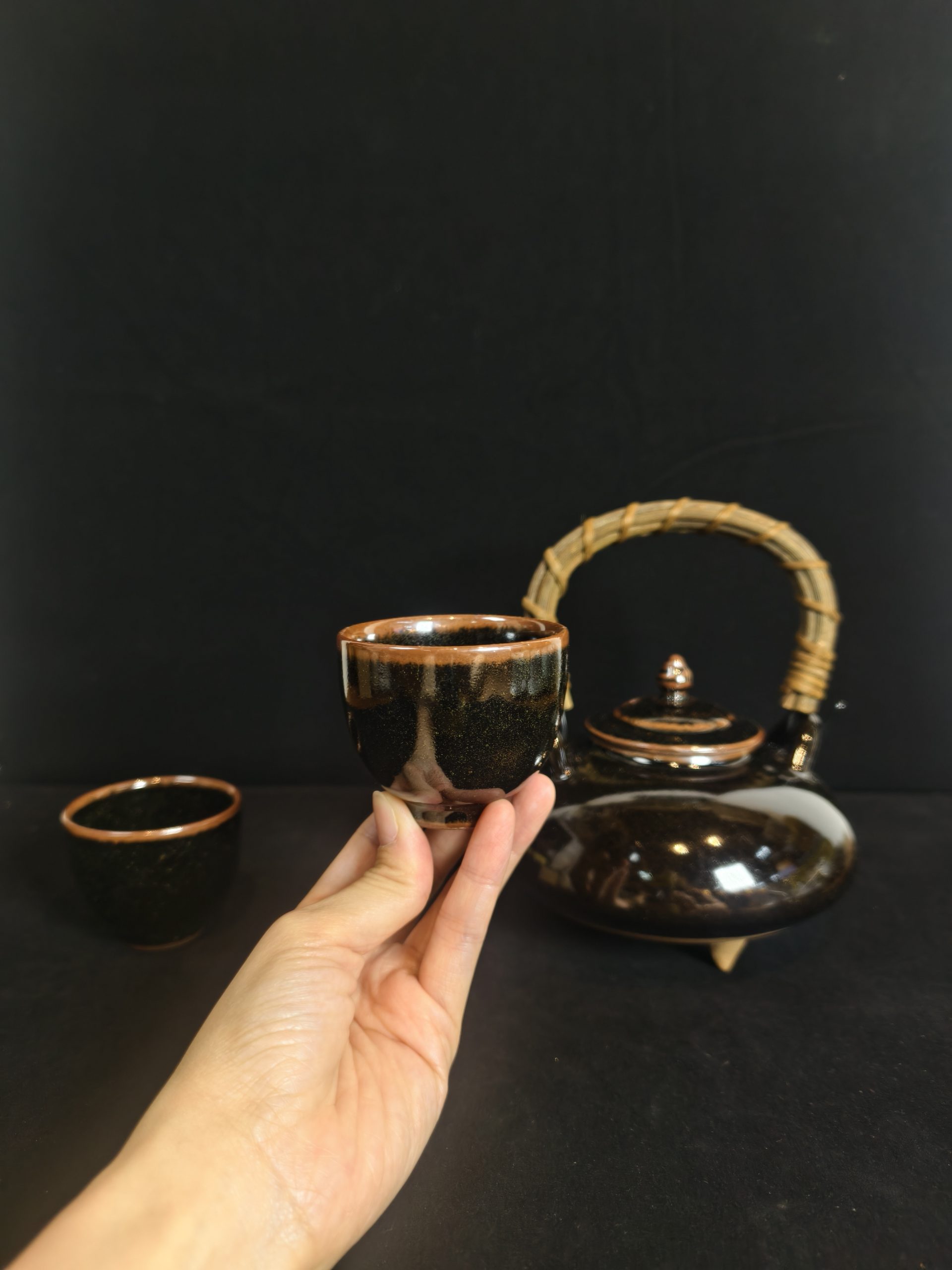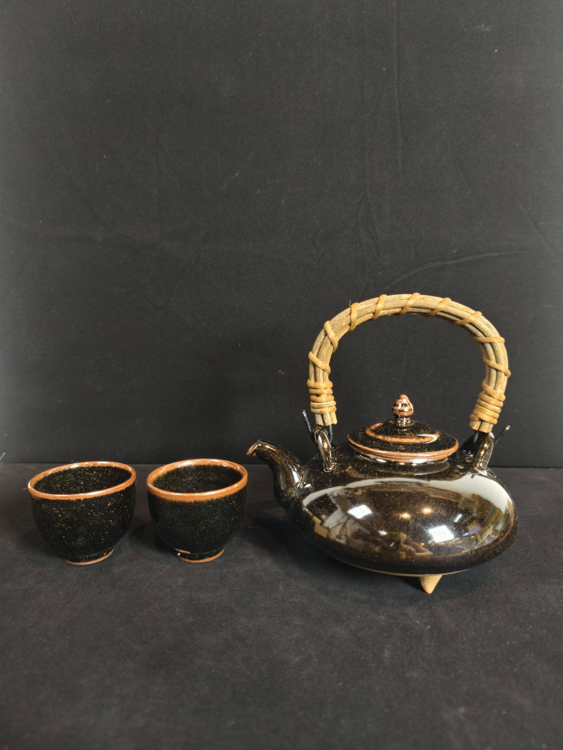 茶具组 [黑萨摩烧] [寿官] [1壶2杯][套]